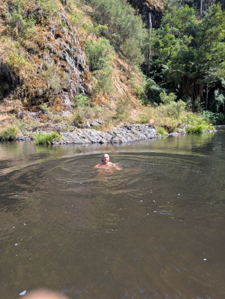 Lance went for a run and discovered more beautiful campgrounds further up the road. We went for a drive and explore before breakfast and found more beautiful swimming holes and a tunnel. Apart from the alpine scenery this area is also known for its connection to golf mining. We ate *breakfast * at 1.30pm.