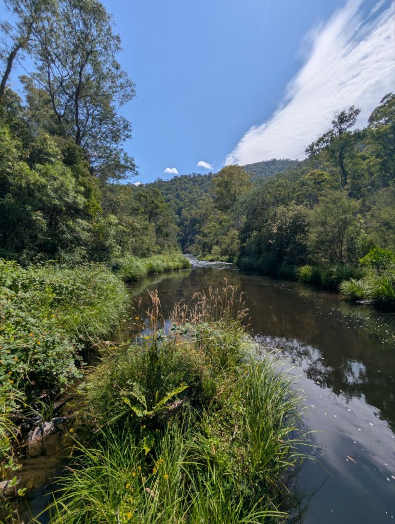 We left at 1.30pm with a 4 hour drive to our next destination Sheepyard Flat in Howqua Hills Heritage Area. I had been here briefly when we visited Merrijig on a girls weekend and remembered how beautiful it was. With a couple of rest and fuel stops along the way we didn’t start the long steep drive down the Howqua Track until nearly 6pm. It seemed a little ominous heading down as there were still fires to the west and thunder and lightning all around. As we pulled up to the campground there was only one other group near us and a few tents over on other side. Apparently it is usually heaving with people at this time of year but the fires ha5made people cautious.