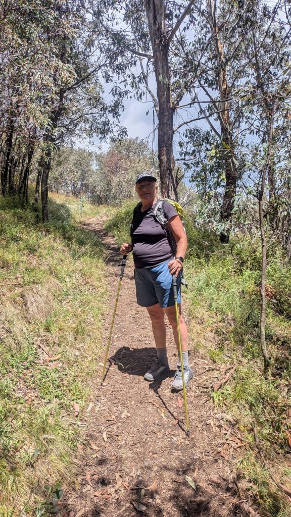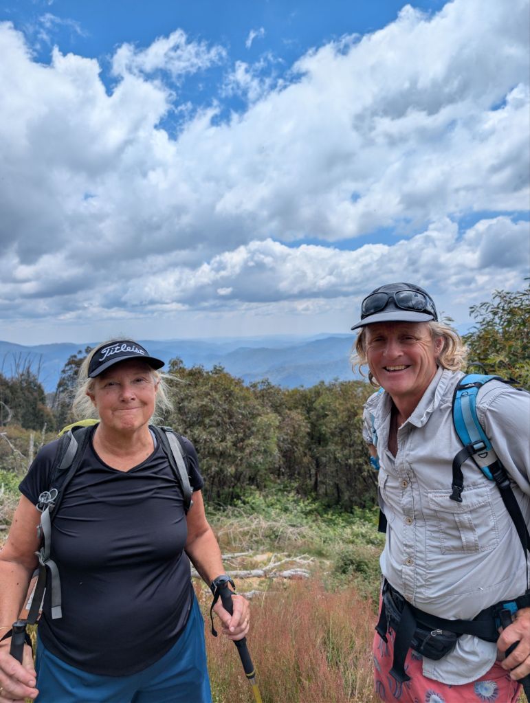 It was a 14km steep drive with our camper to Mt Stirling Alpine park on a good quality dirt road. We stopped in the large carpark thinking that was where the walk started. Apparently not- we had to negotiate another 21km on a smaller, windier, steeper, dirt mountain road. By the time we reached picnic area where the walk began it was after 12pm. The information board described the walk as 45 minutes up a steep path. That’s not usually a problem for us but that meant it would be after 1.30pm before we got back to the car and Lance had a work meeting to log onto. The other option was to drive the 4WD track up the last part. I was not keen to do this as we had the trailer and track was steep and remote.