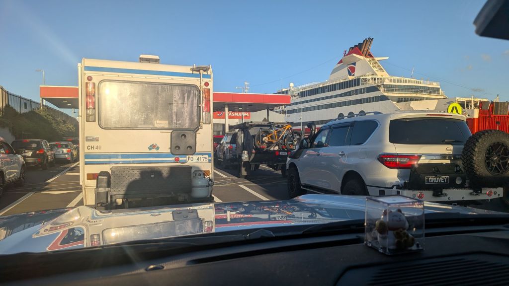 We had our second night’s sleep in a row in a real bed. Lance slept like a log but I kept waking up every hour or so worrying that we would miss the alarm. Checkin for the Spirit of Tasmania was between 6am and 7.45am. I had been warned not go too early because there is a lot of sitting around, but I like to be early for things. Lance likes to be late and we agreed to aim to get there at 6.50am.