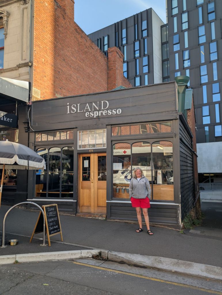We should have been on our way then up to Cradle Mountain but Lance remembered that he had forgotten his guitar which was back at Kingston. Off we go back for 40 minute turnaround and then on the way back he realised he left his phone in the coffee shop. Back we go to the coffee shop, which turned out well because we had a chance to have another goodbye coffee with Jack and to see his office.