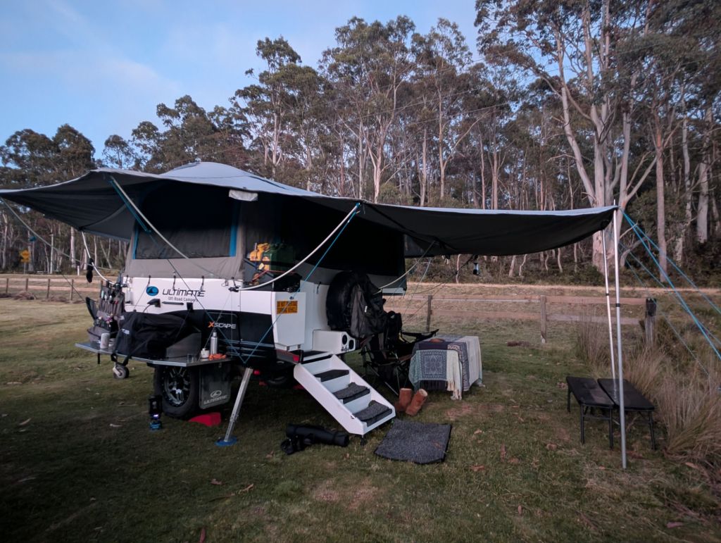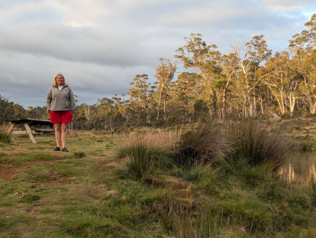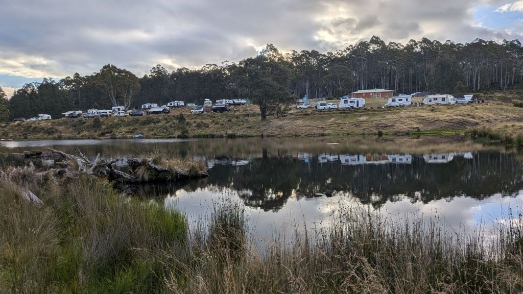 By the time we arrived at the campground it was nearly 6 and the place was nearly full. This was a HipCamp and we had a booking so it wasn’t really a problem. The campground was as close to Cradle Mountain as you can stay, without being in the National Park. The owner Scott and his wife had owned the farm for about 30 years and about 5 years ago they decided to take campers in their property. They have done a lovely job, providing clean toilets, plenty of flat space to camp, some with power. There’s a dam where they’ve made pretty paths around for walking and campers can even kayak on the dam or do catch and release fishing.
