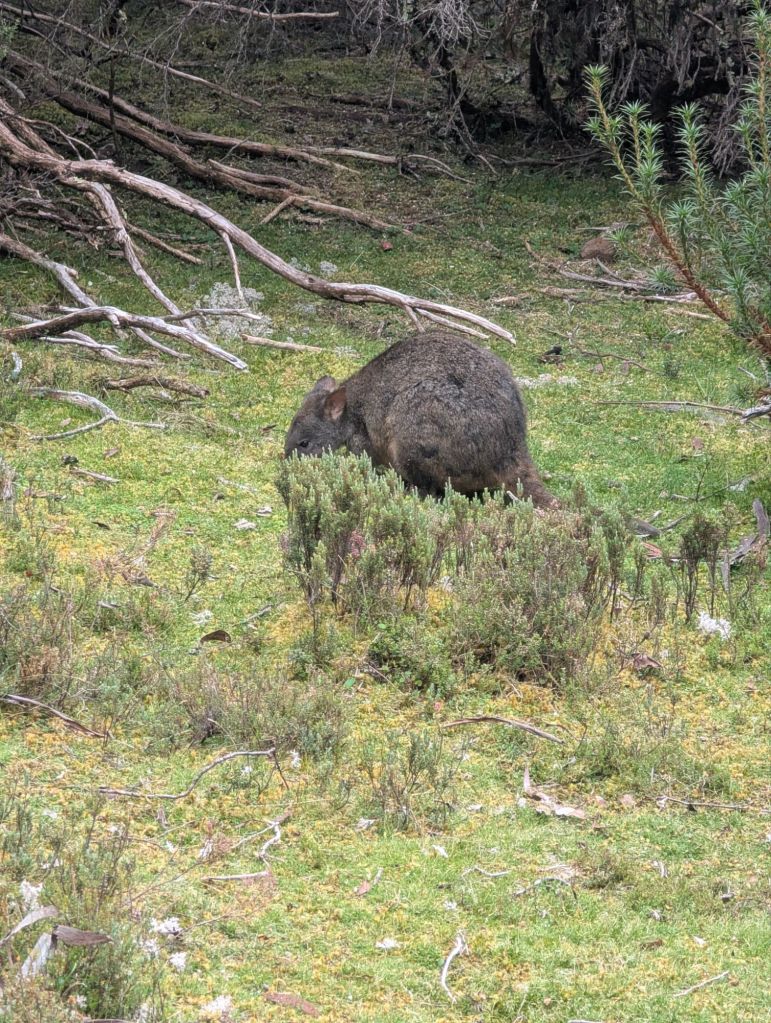 Once dried, we climbed up and up and up to the lookout. The last part actually has a chain to help you haul yourself over the rocks. It actually wasn’t quite as hard as it sounds but I was glad to arrive at the top. Here the views are out of this world. It was a perfect place to eat our lunch. We went down by a different route via the start of the Overland Track. It was much easier going down this route than I remember it when we went up with 25kg packs on our multi day hike 10 years ago. We ended the hike this time at Ronny Creek where we saw several wombats.