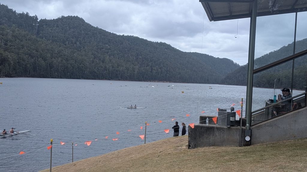 Sunday dawned a little gloomy so we packed up quickly so we didn’t have a wet tent. We went to Sheffield, home of the murals, for Mass and our last scallop pie of the trip then drove to the National Rowing Centre at Lake Barrington. There was a state school rowing carnival on so it was great to see it in action.
