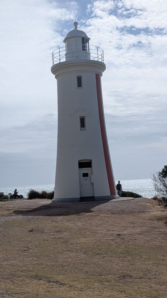 We then headed to Devonport so we had plenty of time to wait for the ferry. We visited the lighthouse in very windy conditions. We were hoping for a late lunch at a beachside cafe but everything was closed. Lance had a last swim in the ocean and then we went to board the ferry for Geelong.