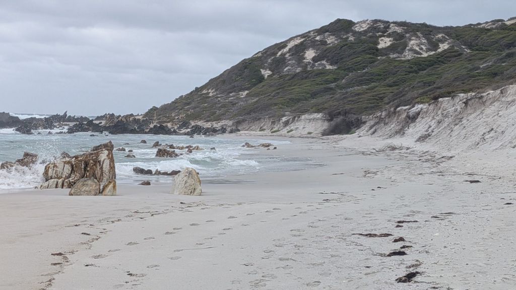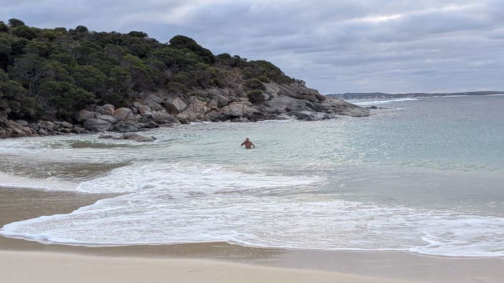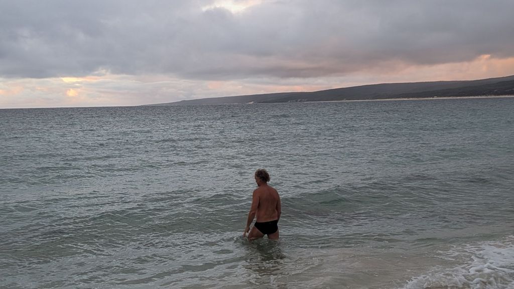 We went for a last swim at Gnarabup (for Lance) and breakfast (for both of us) before heading for Perth. We visited Cape Natualiste first so we could complete our Cape to Cape.