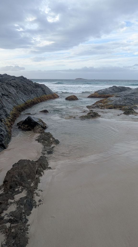 8e decided to head towards Fitzgerald River National Park. This park had been severely affected by bush fire in January and as a result most of the roads and some of the campgrounds were closed. We first tried to get into the national park campground but it was booked out but we were able to get a spot at Hammersley Inlet. The drive in was fantastic and we arrived in fading light to a campground overlooking the inlet. Whilst we were setting up we met a lovely couple of bird watchers who had basically been travelling the same route as us, albeit more slowly.