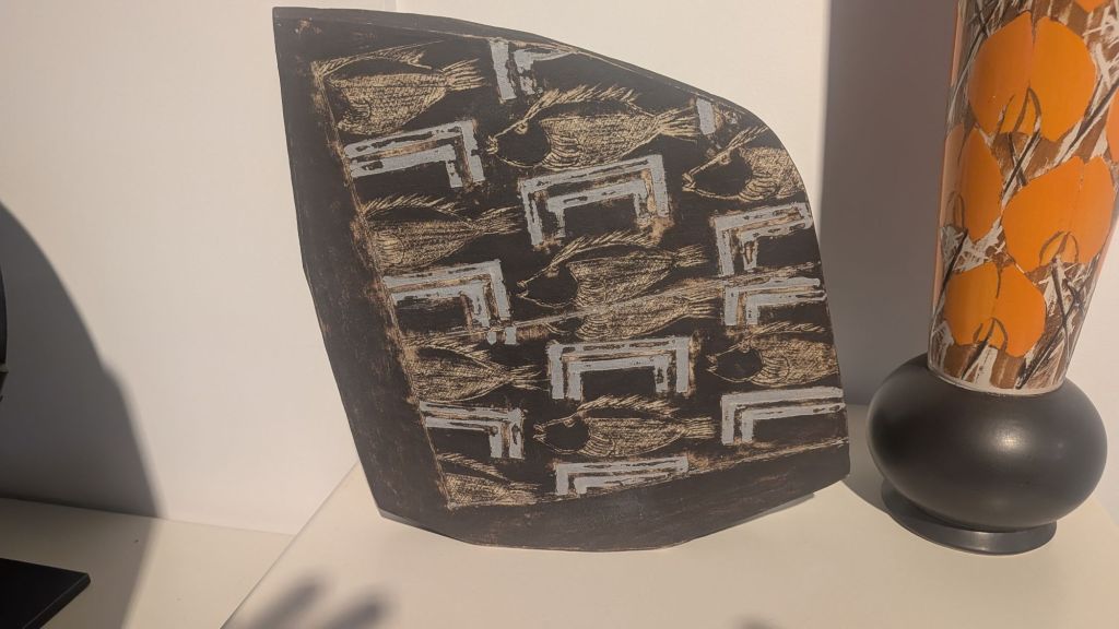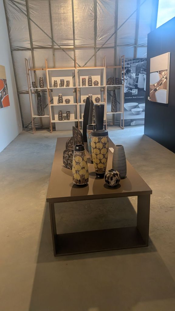 We then set off on the tourist drive through the beautiful countryside. After not too long a car was close on our tail. Lance tried to pull out off in a side street but they followed so we kept going and the car kept following. Eventually we decided to pull into an art gallery and guess what, the car followed us in. It turned out he was the artist. So we looked at his work and bought a pottery piece from quirky resident number 2.
