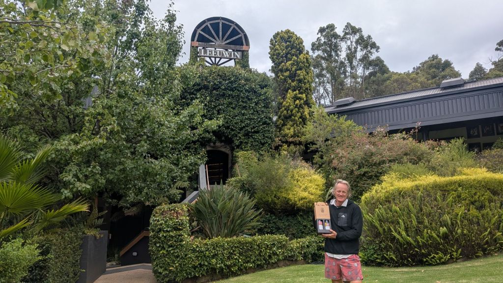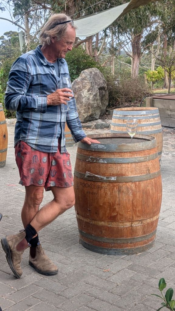Next stop on the tourist drive was a winery. There are many on the route but we stopped at just one Rockcliffe. Another beautiful setting and nice wine hosted by quirky resident number 3, the owner and sommelier. He was an English geologist who had come to the area 40 years ago. For tasting we could just select any wine he had, and there was no real limit to the amount. Seeing it was still morning we didn’t over indulge. We bought a few bottles.