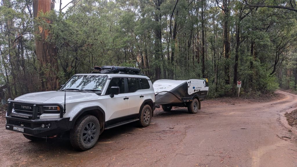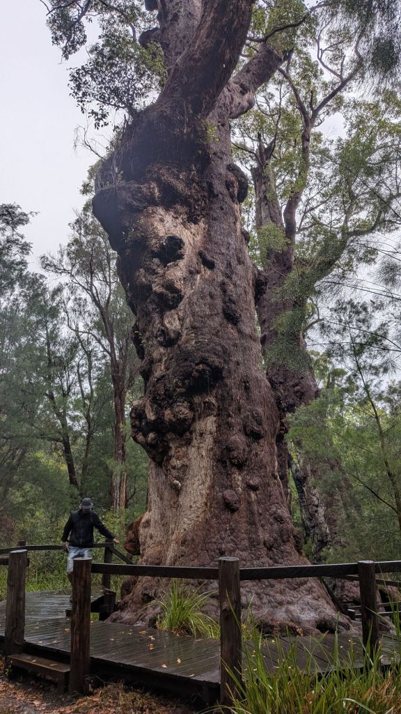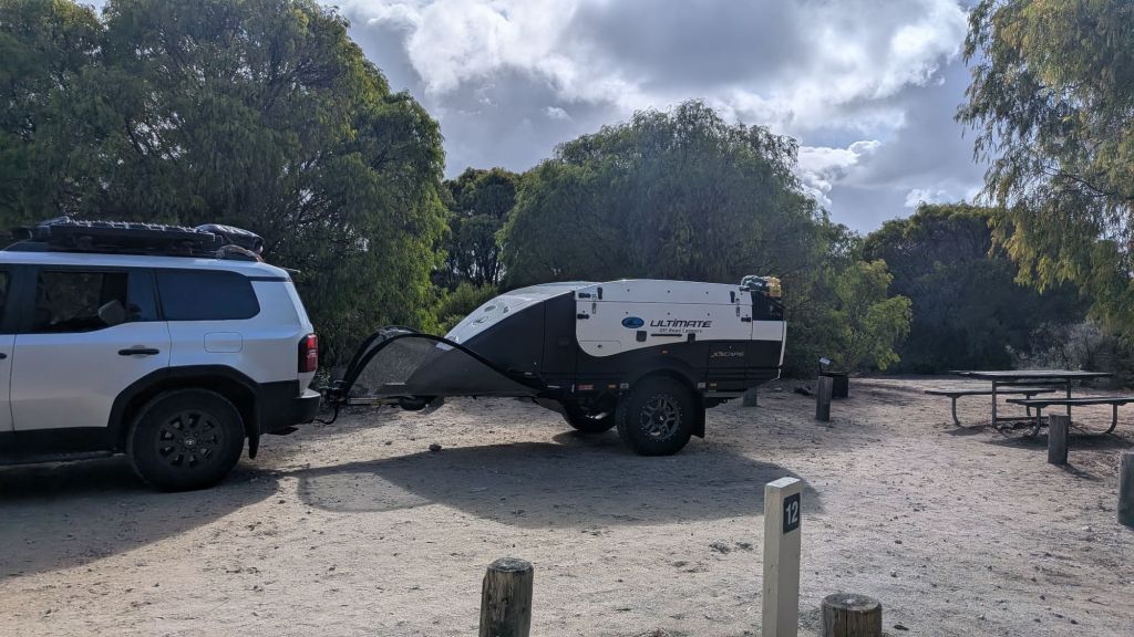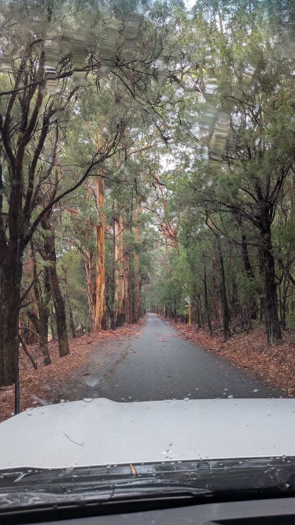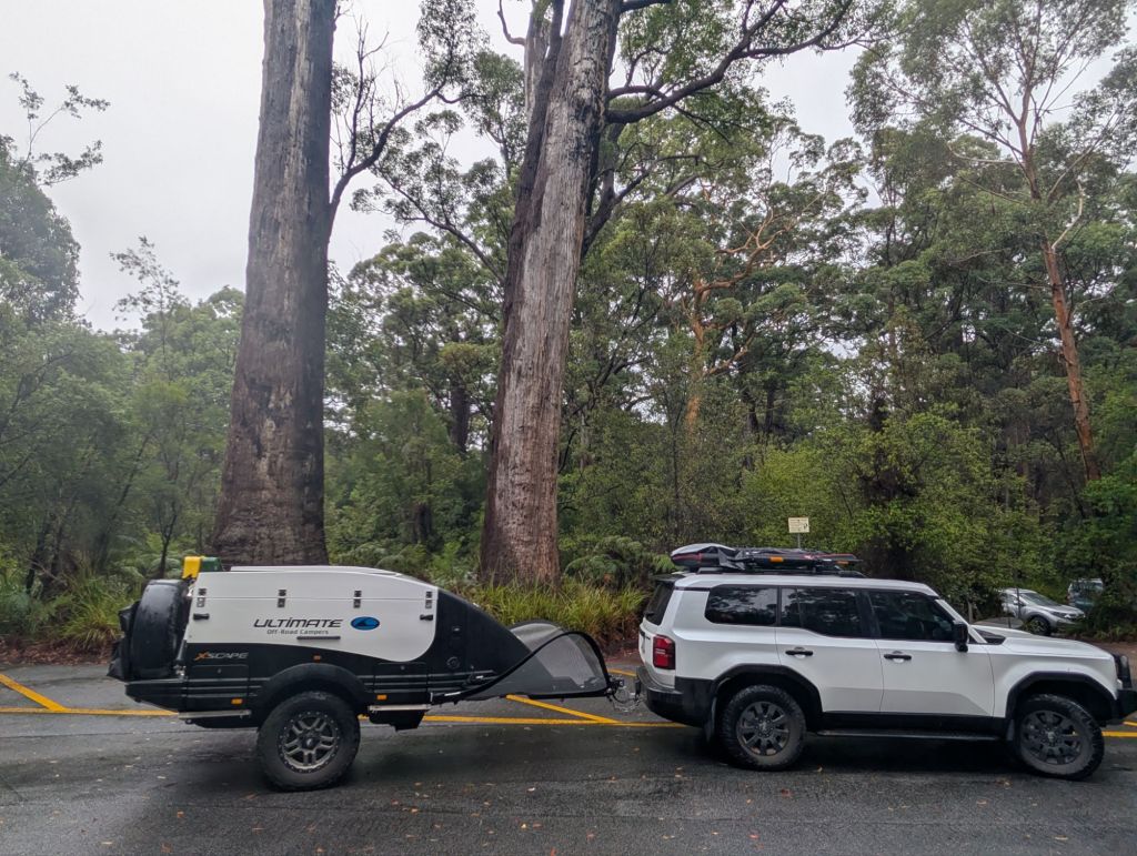 The effects of Cyclone Narelle were felt right down on the South West Coast so the next morning we woke up to torrential rain. As we didn’t have long to get to Perth for our flight back to Sydney in April and still much to see we decided to try packing up in the rain anyway. Let’s just say we made a lot of rooky errors, including me running into the towbar and getting a dead leg and as we would find out later, a soaked camper trailer.