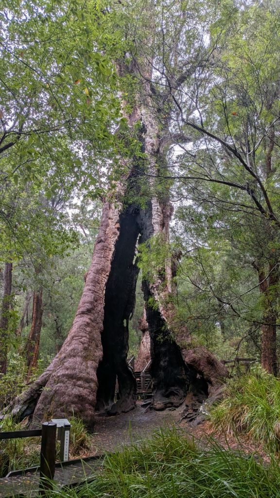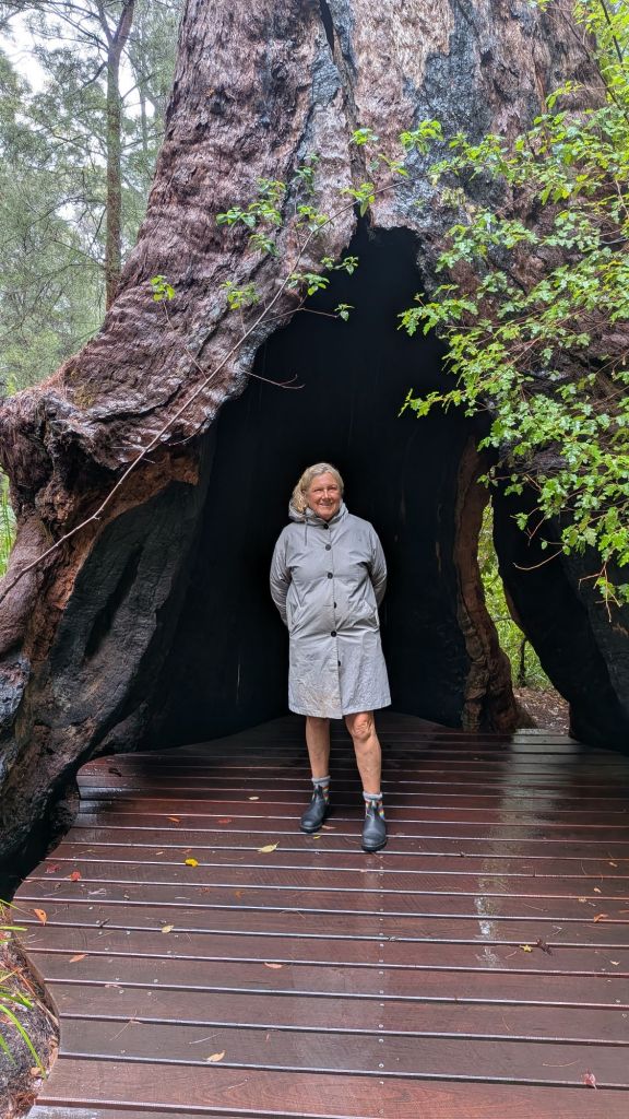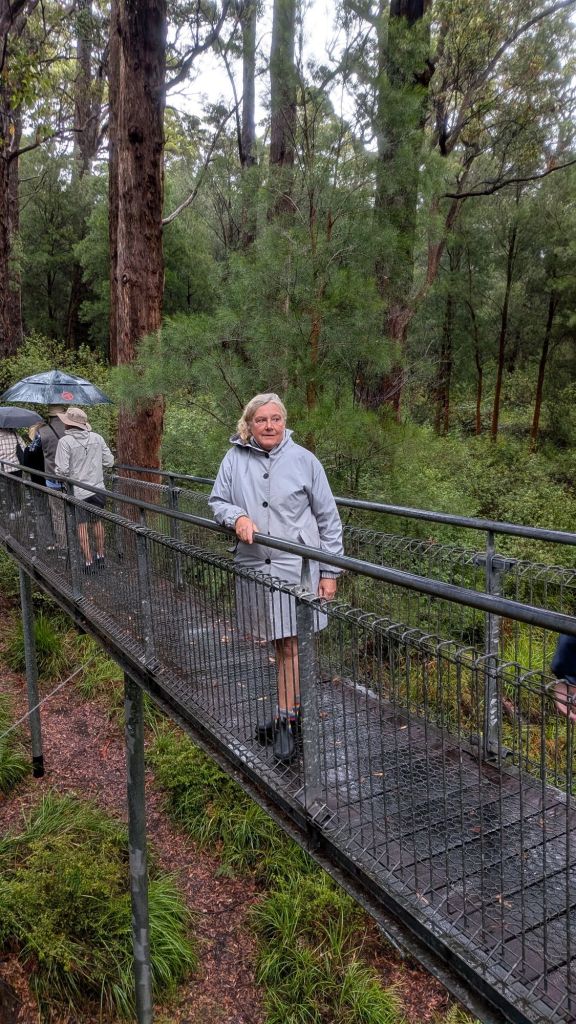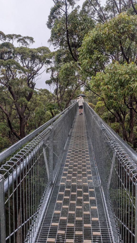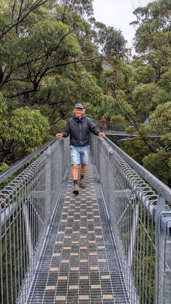Wet pack up done, we drove through the Karri forests in Walpole. We stopped at the beautiful tree top walk and enjoyed a very pleasant couple of hours in the forest. The tree top walk is an engineering feat of suspension bridges joining the trees so you get to walk amongst the top branches.