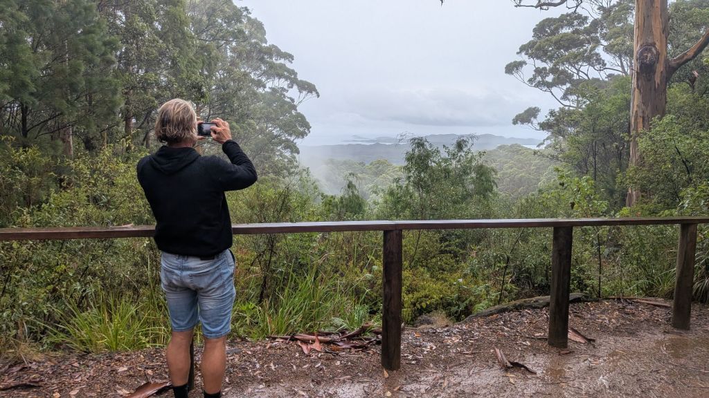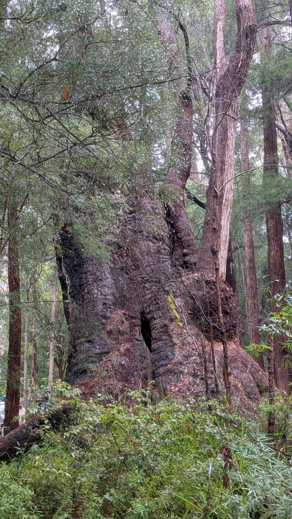 After the tree top walk we took a tourist drive up a spectacular narrow dirt road, thar advised no caravans. The forest was even more beautiful and we stopped to admire views and a giant tree