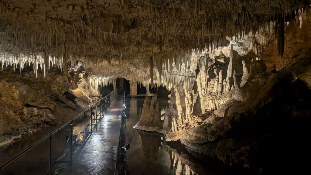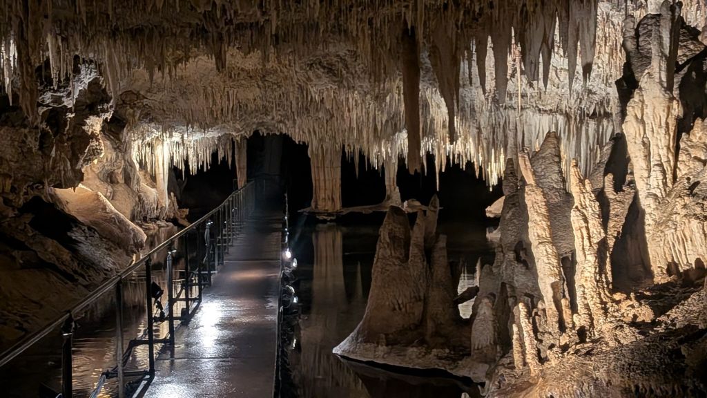 Margaret River area has many beautiful caves and one of the more spectacular ones us the Lake Cave which was conveniently close to our campground. We did an excellent tour there, admiring the limestone features and the underground lake.