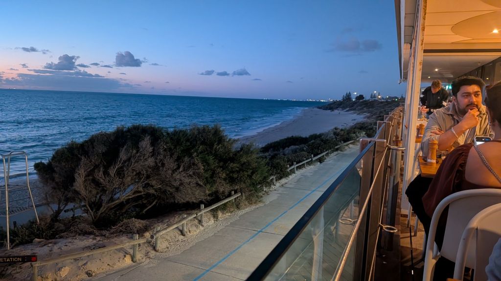 We had booked our camper trailer in for a service with the lovely Josh at Bluewater Campers in Perth. He was going to service the camper while we were away and it meant we could leave it with him for the next 3 weeks. Our flight was not until 11pm so we went to Cottesloe Beach for dinner before going to the airport.